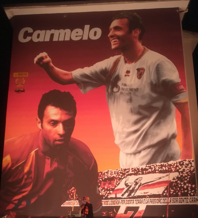 Finalmente da ieri sera dopo mesi di duro lavoro è calato il sipario sul murales dedicato a Carmelo Imbriani e voluto fortemente dal direttivo della Curva Sud giallorossa. Un’opera mastodontica che ha coperto interamente la facciata di uno stabile ubicato in via Massimo D’Azeglio nel popoloso Rione Libertà, proprio di fronte alla sede organizzativa della torcida giallorossa. Diversi gli ospiti invitati e che hanno aderito all’iniziativa senza batter ciglio. Presente anche il massimo dirigente giallorosso Avv. Oreste Vigorito unitamente a mister Inzaghi e ai due calciatori bandiera di questa stagione ossia Lollo Del Pinto e Ghigo Gori.