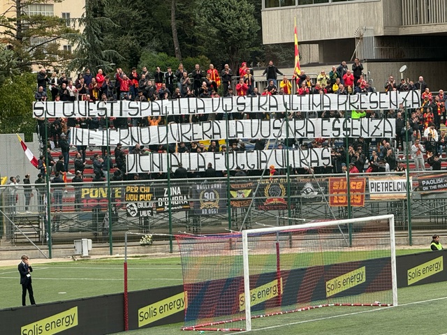 II tempo: La ripresa si apre al 57′ con una conclusione di Simonetti di poco oltre la traversa. Dopo una girandola di sostituzioni da una parte e dall’altra il Sorrento al 78′ va ad un passo dal goal con Colangiuli, la sua conclusione incoccia sulla traversa. Passano due minuti e questa volta è Manconi a non trovare la porta a tu per tu con Del Sorbo. Reattivo ancora Nunziante all’82’ sulla conclusione sotto misura di Lops. Poco o nulla accade fino al 95′, quando ancora Nunziante dice di no ad una conclusione di Esposito. I Giallorossi possono festeggiare un’altra vittoria sotto il settore ospiti.